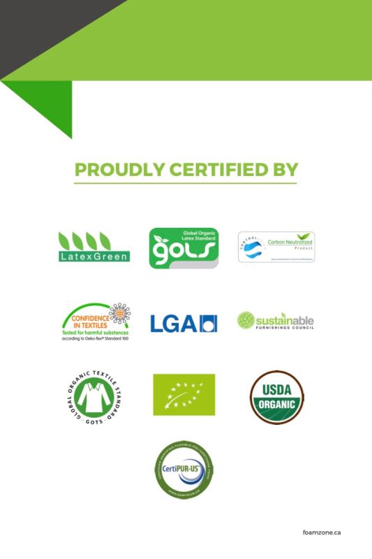 Covered with a 100% Natural Cotton, upgrade to Organic cotton or Tencel removable cover of your choice, 25 Year Warranty.